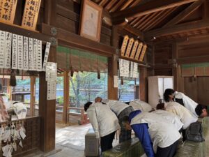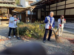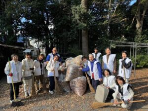 正式参拝の後、境内の落ち葉拾いのご奉仕でした。