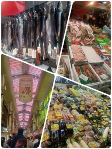 新鮮な魚介類や野菜等の店が並んでいます。