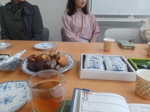 差し入れやおやつを前に自己紹介から話が脱線し、皆さんの暮らしの知恵が学びとなりました。