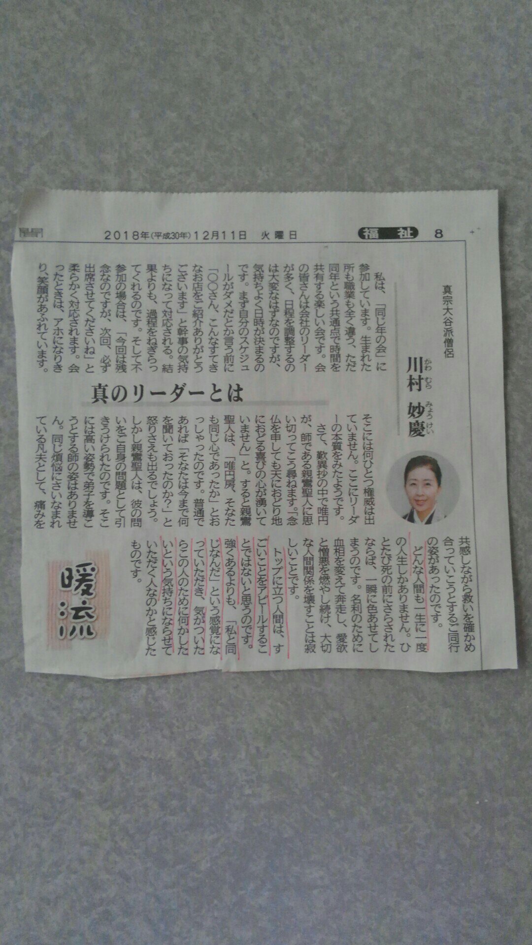 最後に今日のキズキのキッカケになった京都新聞の川村妙慶様の「真のリーダーとは」の投稿記事を掲載して私の長い独り言を終わります。