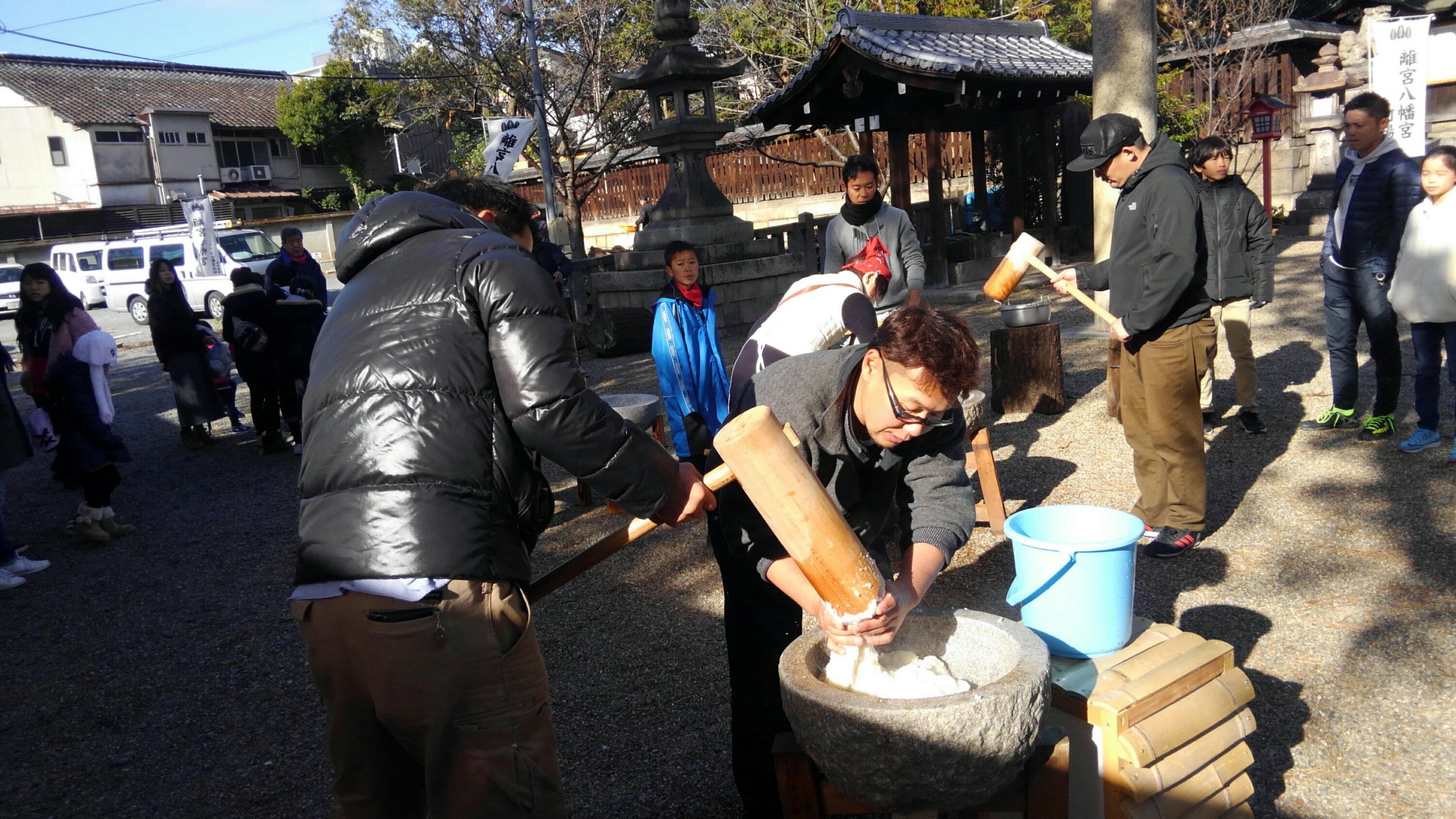 離宮八幡さんの境内では杵の音と子供達の声で、穏やかな年越しを肌で感じます。
