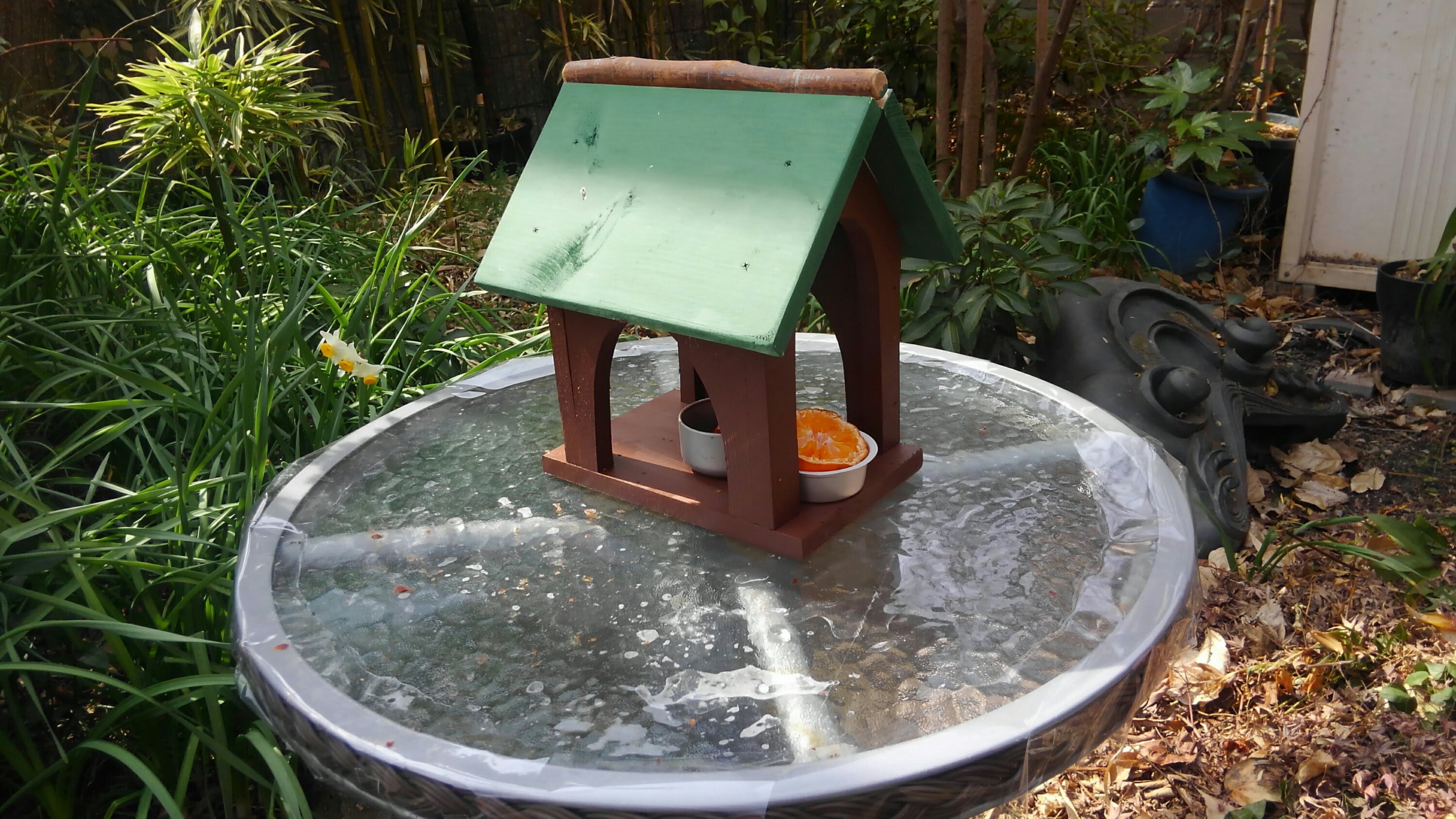 笑顔の杉田さんとミドリのお屋根がご自慢のメジロさんがお出迎え。🐦🌱🐦🌱🐦