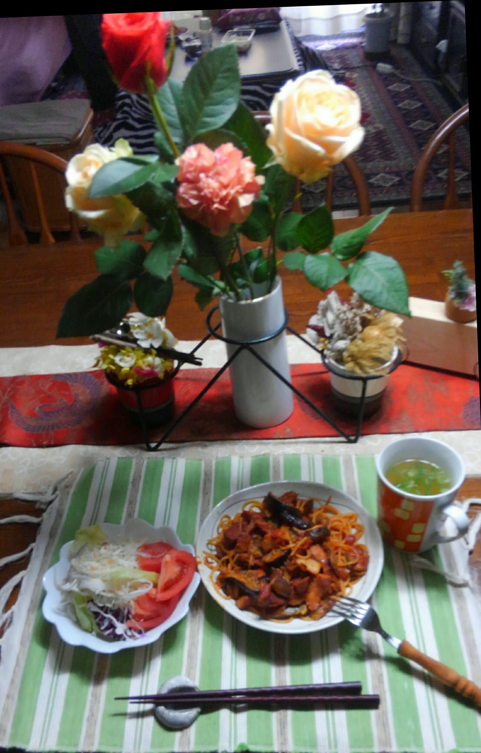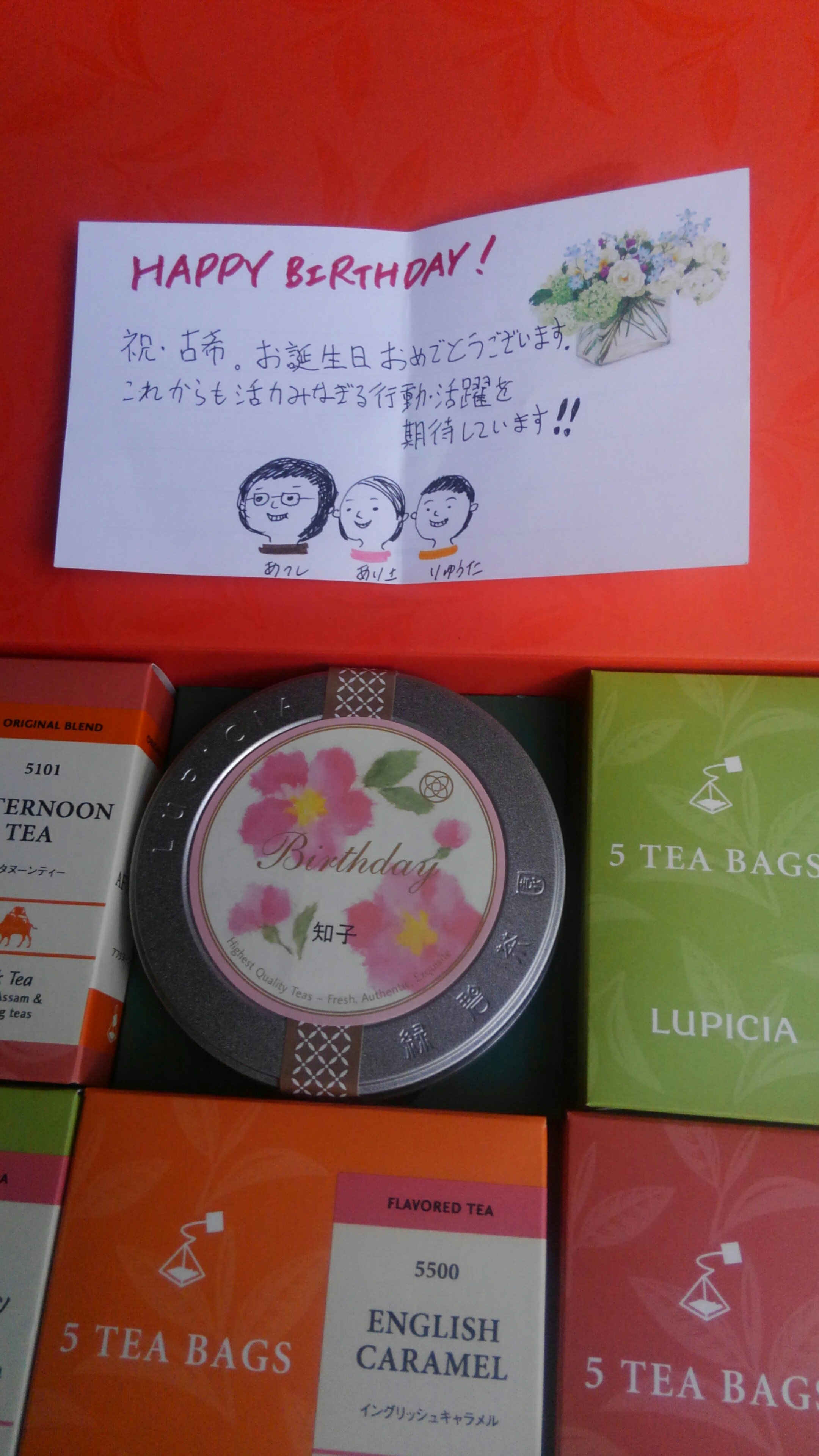主人からはランチにべーコンと茄子のスパゲティー、息子家族からは素敵なプレゼントを頂きました。