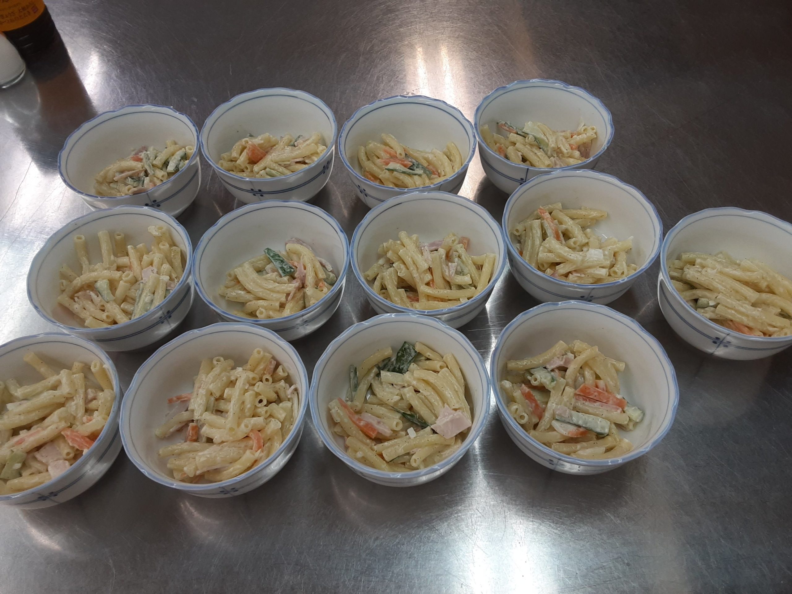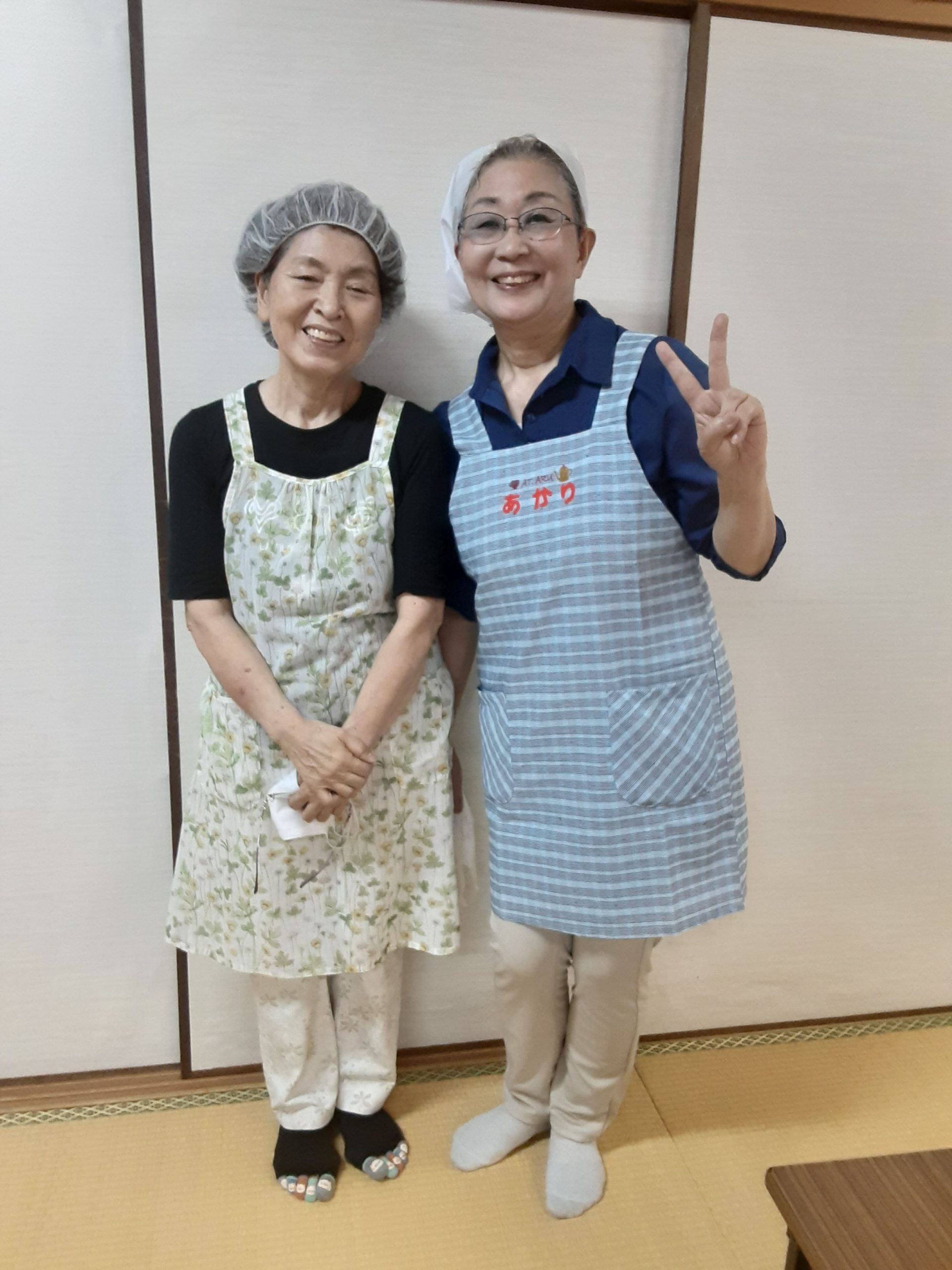 マカロニサラダもありました。子供達は勉強してから下で皆で夕食をいただきます。今日は子供5人で並んで「いただきま~す🙏」をし、異年令の学級のようです。私が自己紹介をするとエプロンを見て「新しいあかりちゃん❗️」と寄ってきました。