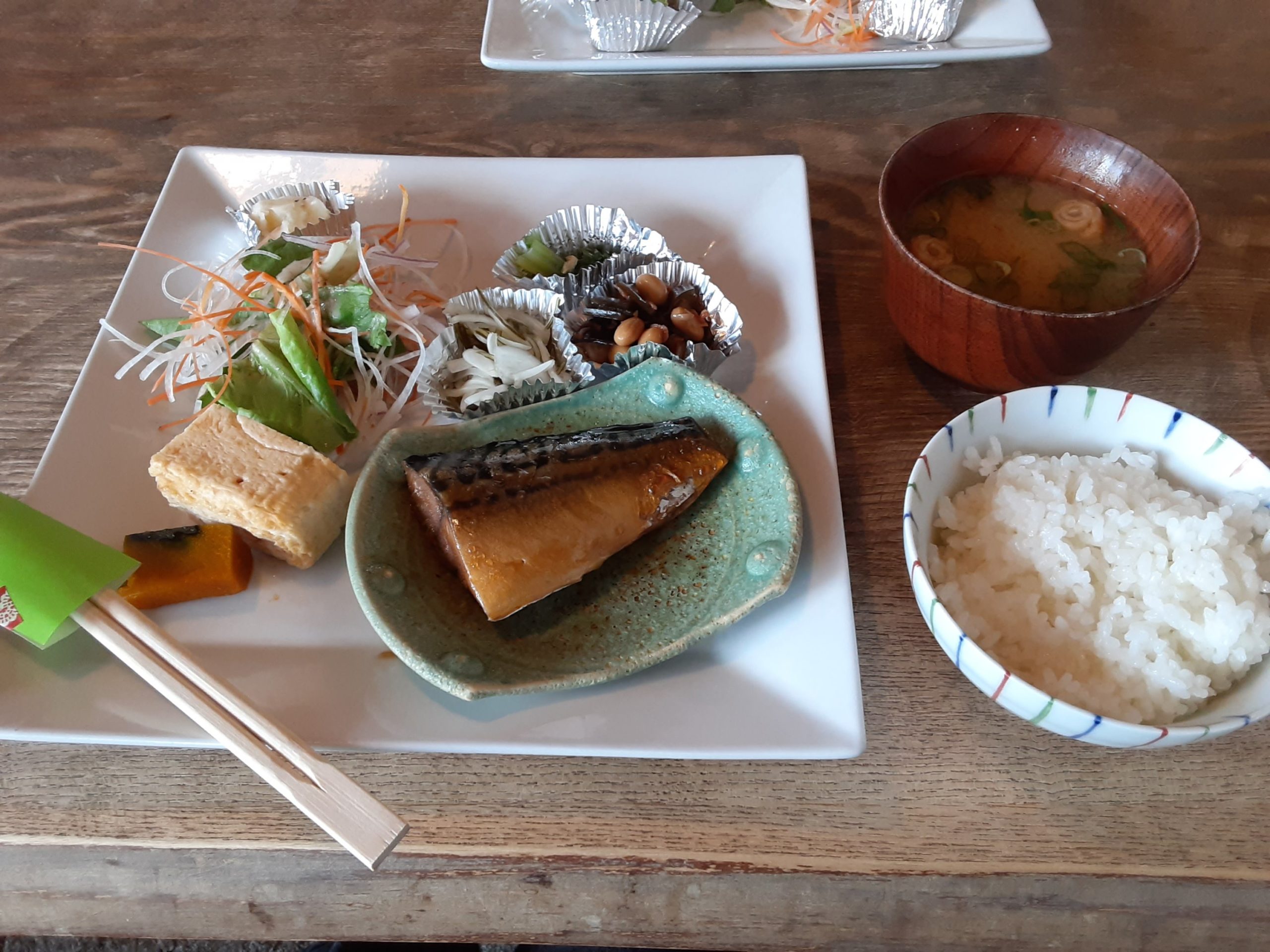 頑張ったご褒美はム-ント-クさんの鯖煮のランチです。