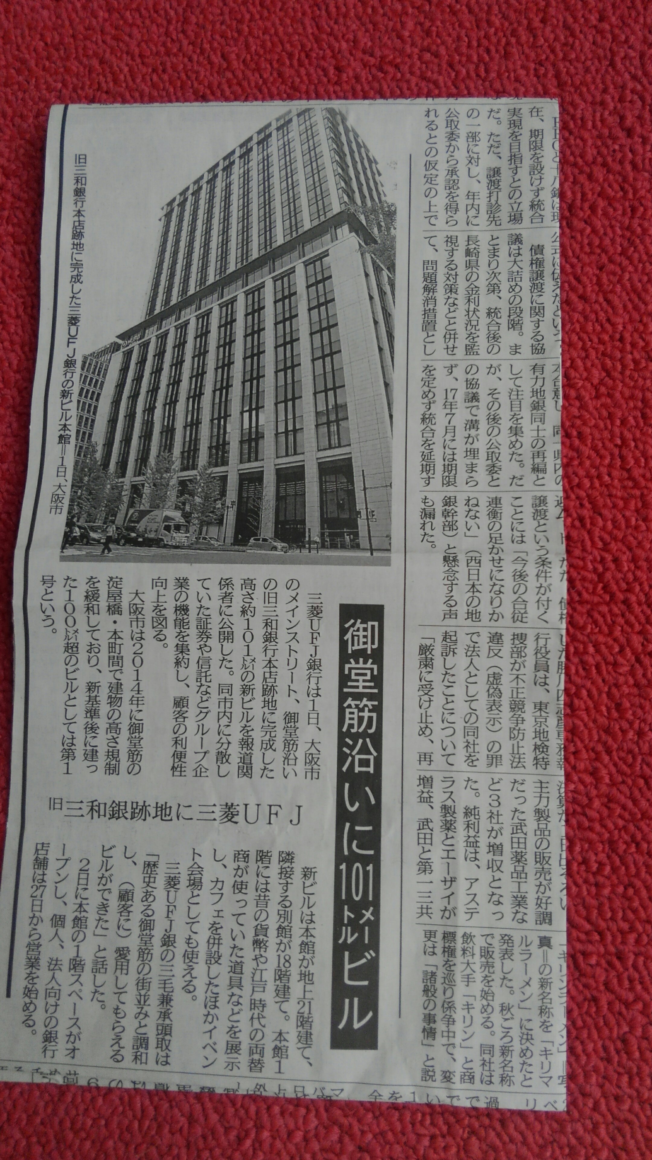 8月の新聞で御堂筋沿いの旧三和銀行本店跡地に新ビルが完成したとの記事がありました。