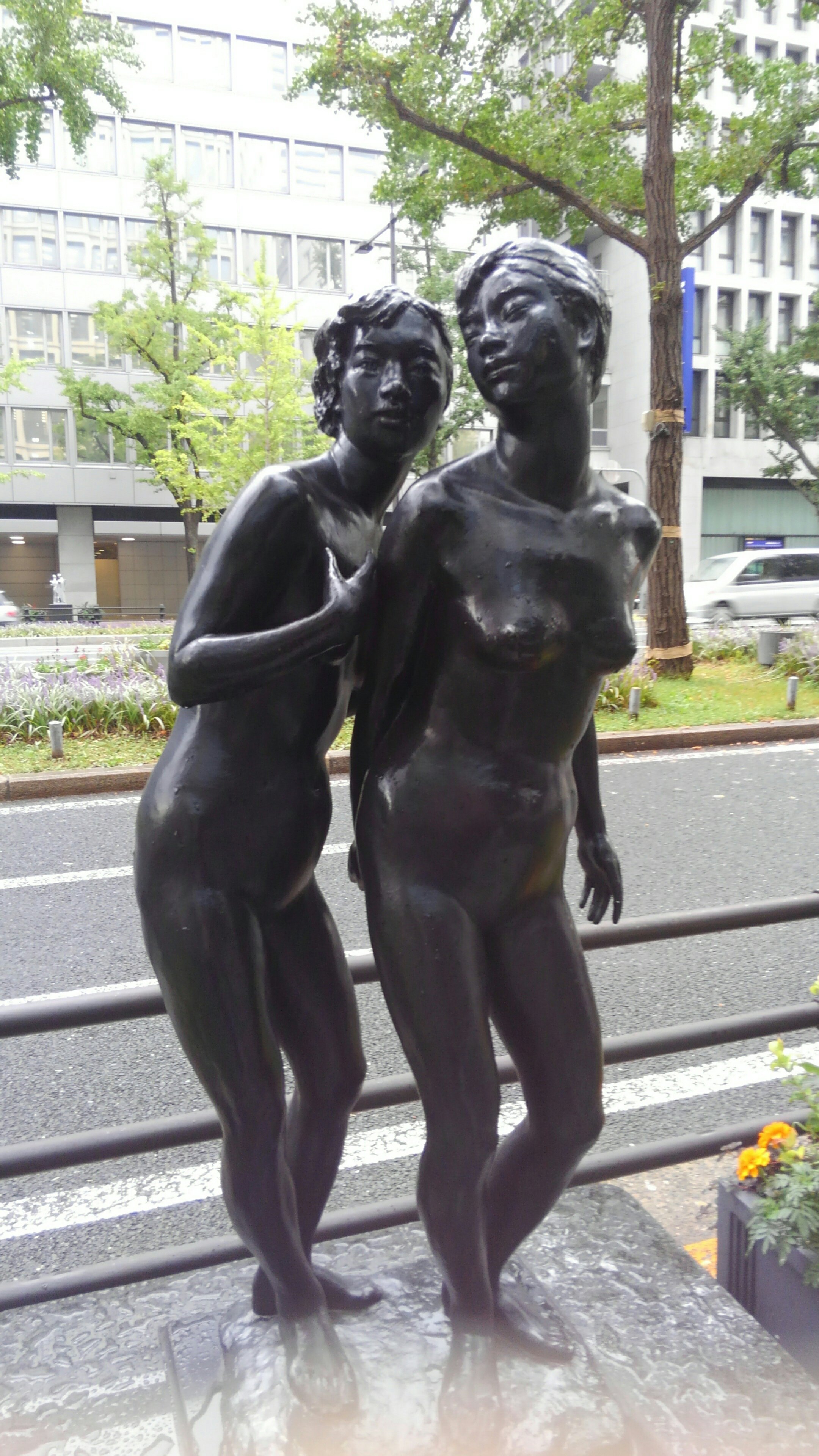 銀杏の横には素敵な彫刻が並び癒されます。